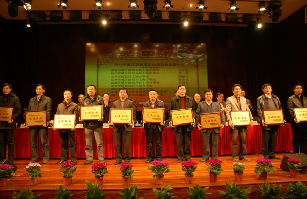 3月5日,江苏省人民政府驻沪办、江苏省建筑工程管理局在上海隆重召开了2010年进沪施工总结表彰大会,出席大会的有江苏省人民政府驻上海办事处主任王建康、上海市建设和交通委员会副主任沈晓苏、江苏省城乡建设厅副厅长徐学军、江苏省人民政府驻沪办机关党委副书记陈殿云、上海市建筑业管理办公室主任曾明、上海建筑施工行业协会秘书长高志海等领导,江苏进沪施工企业负责人及先进个人450多人参加大会。会上对进沪施工先进企业、先进个人进行了颁奖,我公司作为先进企业的代表上台领奖。近几年第一工程公司拼搏进取,在强手如林的上海市场,占得了一席之地,同时公司在上海卓有成效的发展也得到了江苏省、上海市建设主管部门的充分肯定。