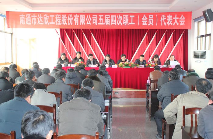 公司五届四次职工会员代表大会于2月11日召开。主席台就座的有海安县总工会常委、组织部长陆威生、海安建管局副局长、建筑工会主席吉远忠、公司董事长马和军、公司党委书记刘厚纯等,公司94名职工代表参加了会议。