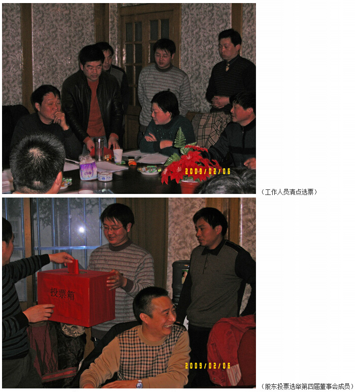二〇〇九年二月六日,我公司在公司会议室召开了全体股东会议,出席会议的有公司全体股东,镇政府镇长吴志梅、副镇长徐仁富等同志应邀列席了会议,这次会议共有十二项议程。