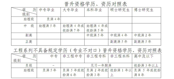 (1)评审。专业技术人员取得初级专业技术资格后,符合下列表中国家规定的学历、职称、专业技术工作年限的,可申报评审晋升相应级别的职称。少数专业破格申报评审的,依照该系列评审条件中破格申报、评审条件。