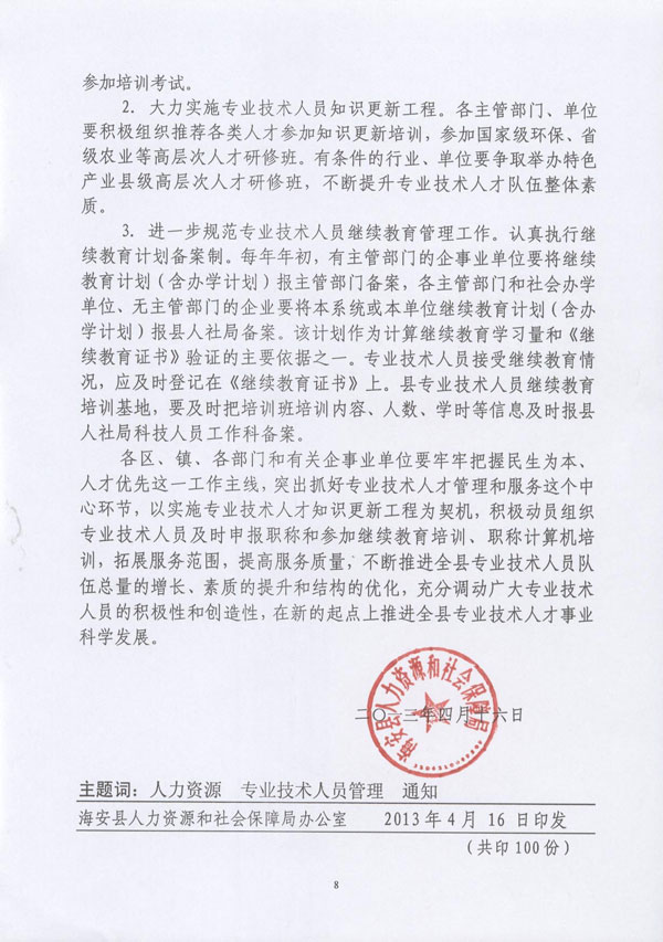 1. 组织落实好南通市专业技术人员第四轮公需科目培训工作(南通市专业技术人员公共服务网网址: www.ntcedu.gov.cn)。各单位要统筹规划,保证所有专业技术人员都应分期分批参加培训。凡 本年度和下年度初定和拟申报晋升资格及聘用人员必须在今年报名