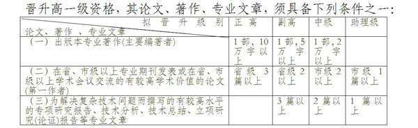(3)职称论文、著作的要求:申请人取得低一级资格,申报