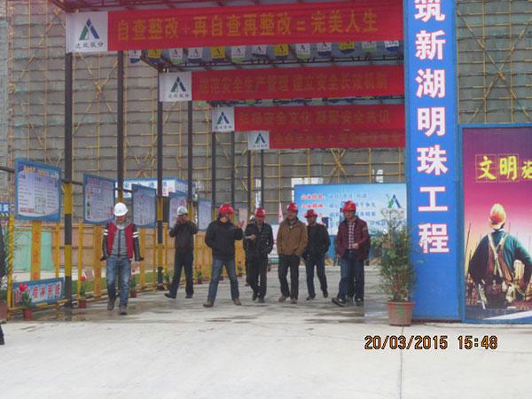 3月20日,第一工程公司承建的明珠城聆湖苑11#、12#地块项目施工现场,迎来新湖中宝项目管理部旗下10多个省、市30多个房产项目部相关负责人前来考察参观。第一工程公司经理杭小建、副经理严正龙等陪同考察。