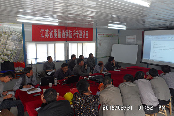 3月31日,针对项目施工过程中的质量通病,第九工程公司在祥河湾项目部组织了30多名项目生产经理、质检员、施工员等参加的质量培训专题会。