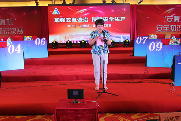 8月1日,公司2015年“安康杯”知识竞赛在海安王府酒店内隆重举行。县总工会主席周于红,经审委主任陆威生,县建管局副局长徐培鸿等领导应邀出席,公司董事会、监事会、各子公司负责人及有关工程公司观众代表,共180多人参加。