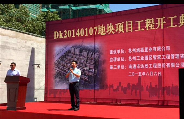 8月6日下午,由第一工程公司承建的苏州园区DK20140107地块项目举行了简约而庄重的开工仪式。旭辉集团副总裁、苏州旭辉事业部总经理王总、片区负责人何总;苏州工业园区智宏工程管理咨询有限公司总经理张总、现场高总监;以及我公司党委书记、副董事长刘厚纯、第一工程公司经理杭小建、副经理严正龙等相关领导参加仪式。
