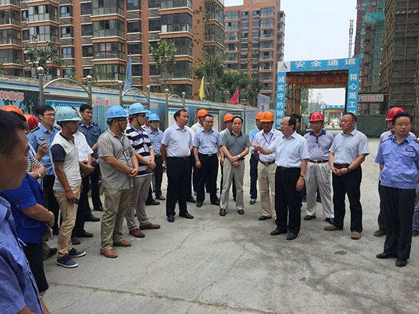 8月27日上午,宿迁市副市长李荣锦率市住建局主要负责人及宿迁市10余家建设单位、监理单位、施工单位负责人莅临第一工程公司承建的星月城二期进行参观考察,这是李荣锦副市长继8月18日检查指导后第二次来我项目,重点推介项目扬尘喷水设备系统控制做法及现场安全文明标准化施工特色。