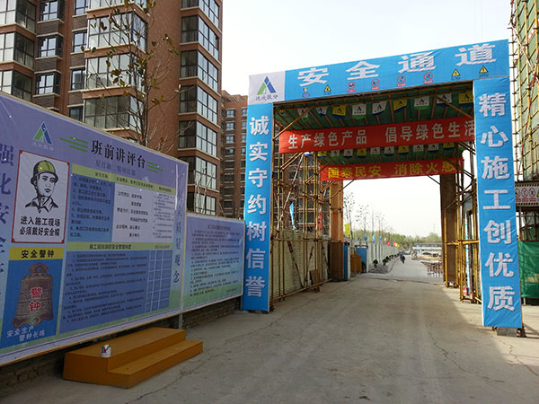 项目经理徐文洪就项目部施工现场绿色施工、安全标准化、定型化施工工艺向来宾一一介绍,得到了参观考察人员的一致好评。