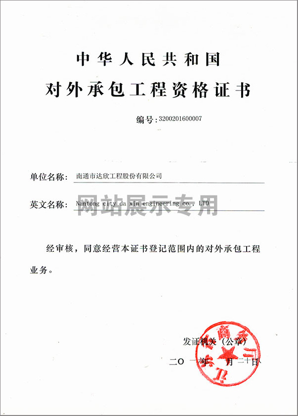 1月28日,公司获得江苏省商务厅颁发的“对外承包工程资格证书”,由此为走出国门承接工程、派遣劳务获得了市场准入许可,同时也为公司积极拓展更大的发展空间奠定了基础。这是公司积极策应“一带一路”国家战略的市场选择,也是公司面对新常态形势下,我国固定资产投资下滑,国内需求增长放缓,建筑业僧多粥少的产能过剩问题越显突出的发展抉择。