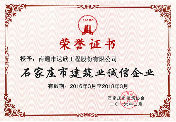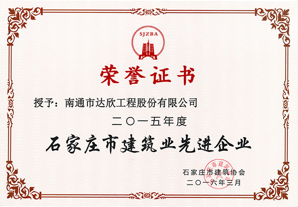 会议表彰了一批诚信企业、先进企业、先进个人。第四工程公司被授予“2014—2015年度石家庄市建筑业诚信企业”、“2015年度石家庄市建筑业先进企业”荣誉称号,另外由第四工程公司承建的众美绿都施工二标段、紫晶悦城7号区1#、2#住宅楼分别获得2015年度石家庄市“兴石杯”(市优)工程。